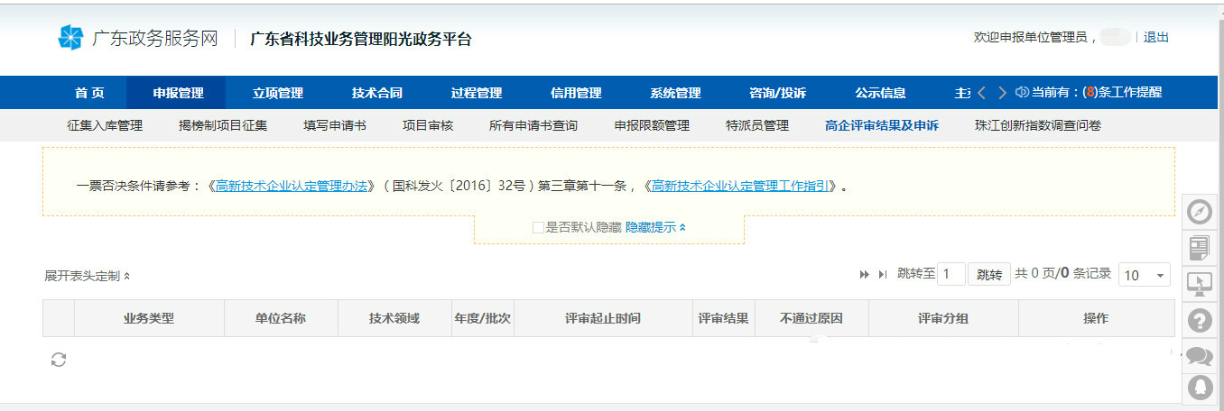 或者點擊“申報管理”然后選擇“高企評審結果及申述”