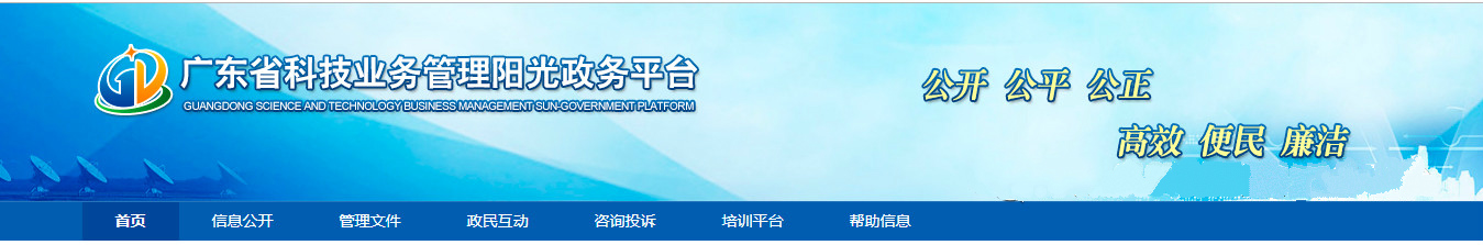 打開“廣東省科技業務管理陽光政務平臺”網站: